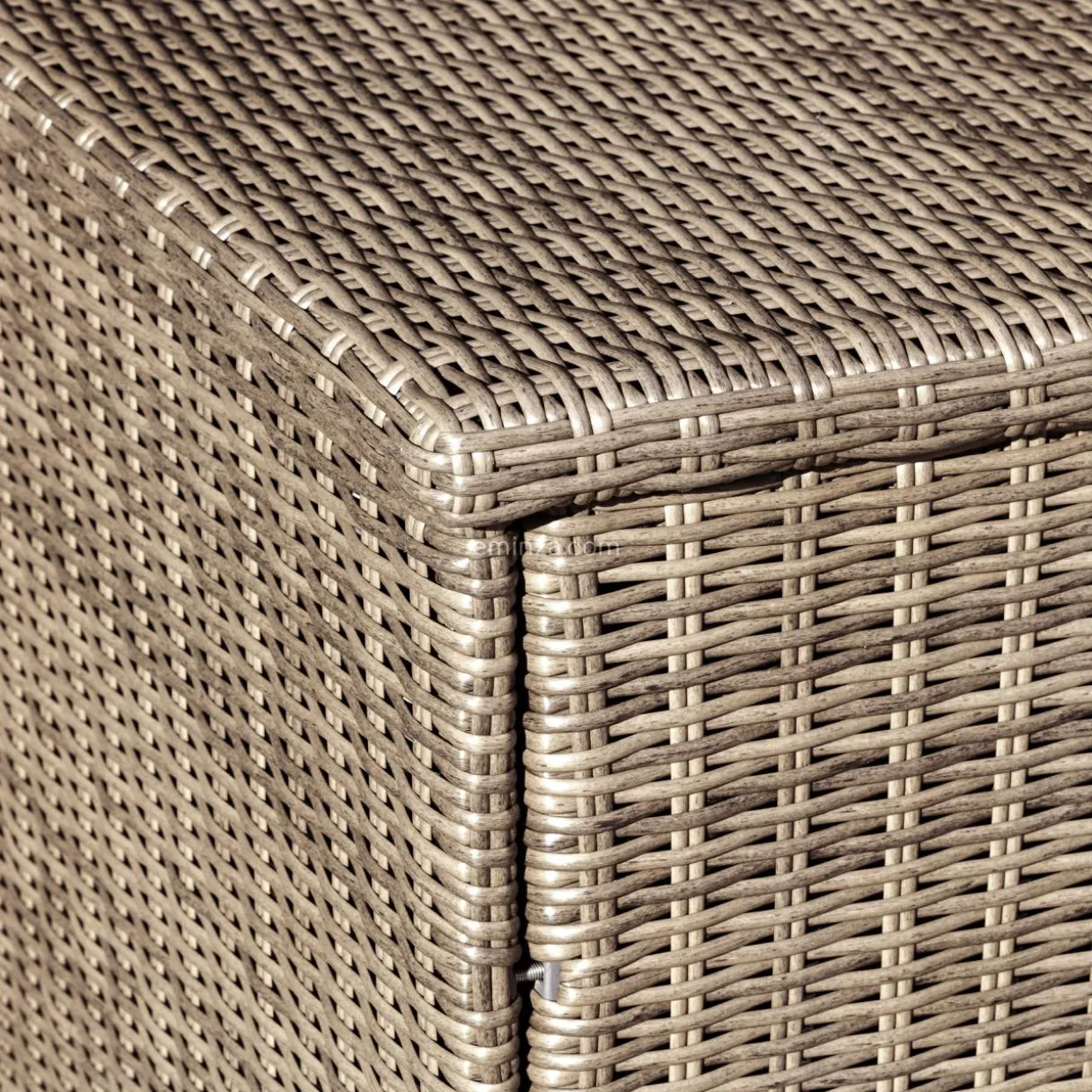 Le coffre de rangement Calvi est ultra résistant aux intempéries, au froid et au soleil. Sa structure traitée époxy est garantie antirouille et son habillage en résine tressée est traité contre le rayonnement ultraviolet.