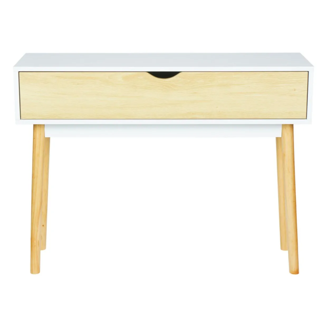 Cette console blanche à un tiroir en bois apportera une touche scandinave à votre intérieur. Idéale pour ranger vos petits objets, elle s’intègre parfaitement dans tous les styles de décoration.