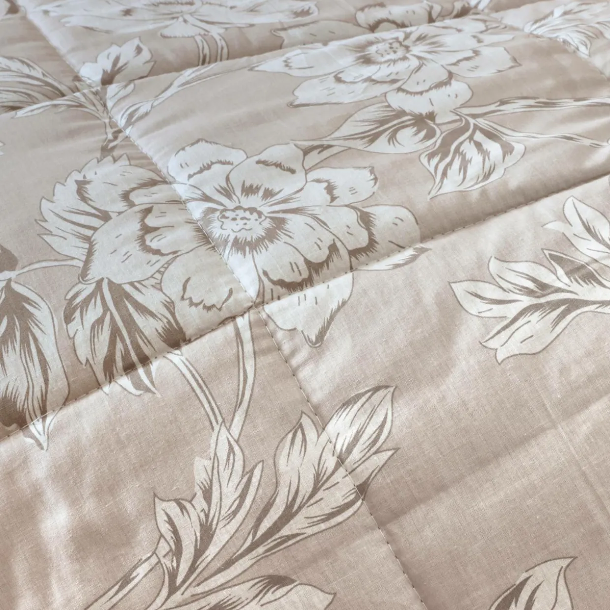 Imprimé : couette à motif floral au recto et à rayures au verso.