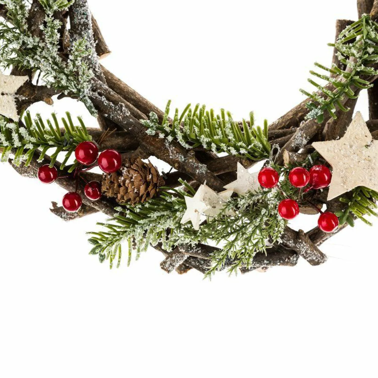 Matière : branches de sapin artificielles et éléments décoratifs naturels.