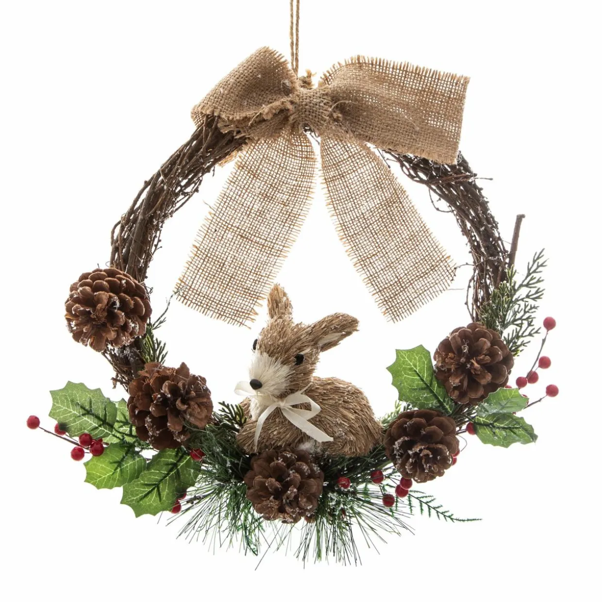 Suspension de fête (H12 cm) Rond Ours blanc et noeud en jute