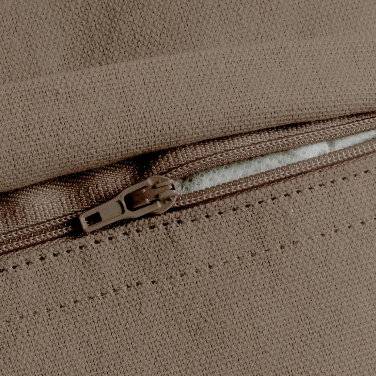 Matière : enveloppe 100 % coton (205 gr/m²) et garnissage 100 % polyester (460 gr/m²).