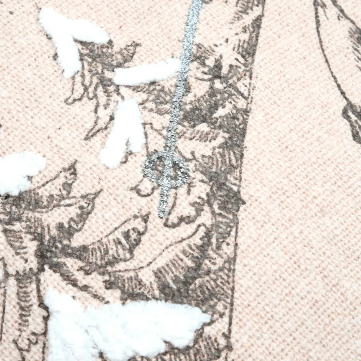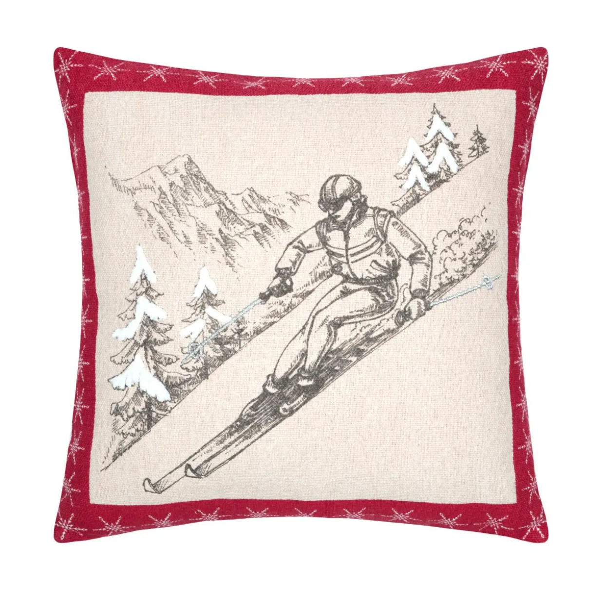 Imprimé : coussin à motif skieur au recto et uni au verso.