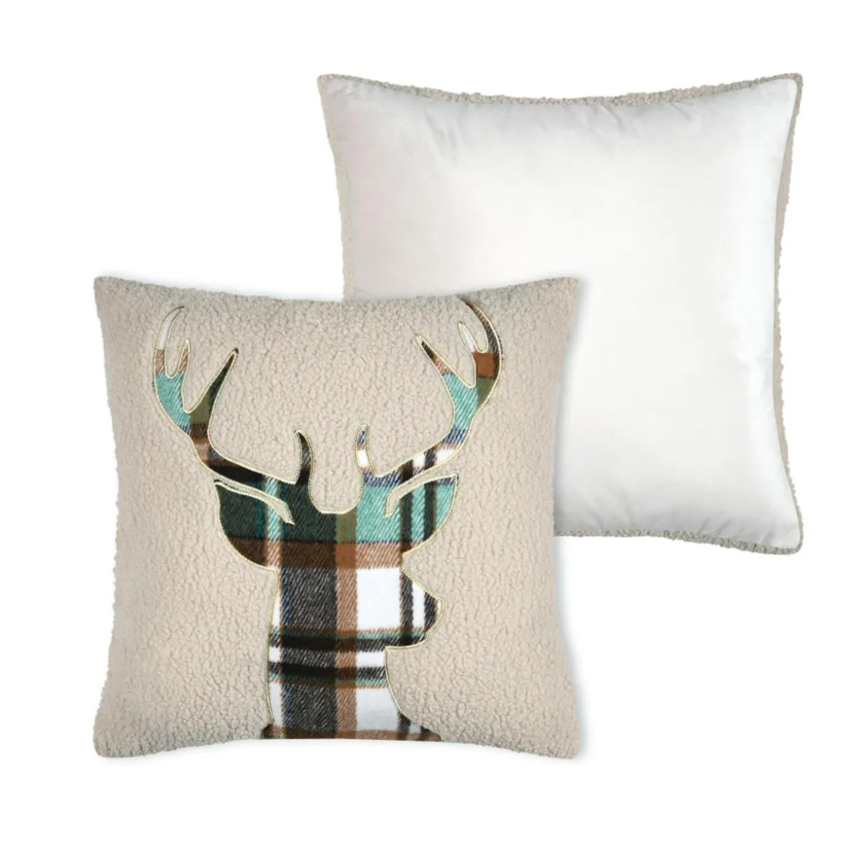 Imprimé : motifs cerf et carreaux au recto, uni au verso.