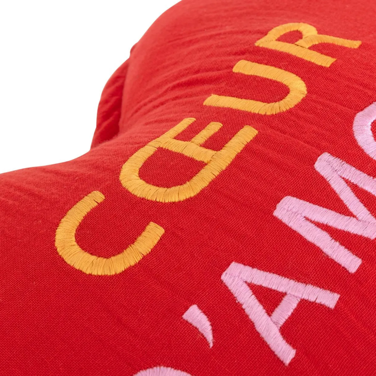 Imprimé : coussin en forme de coeur.