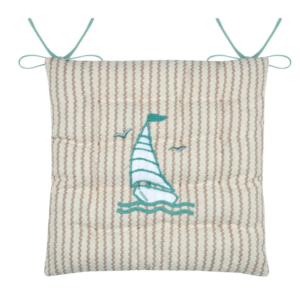 Imprimé : motif bateau et rayures au recto, uni au verso.