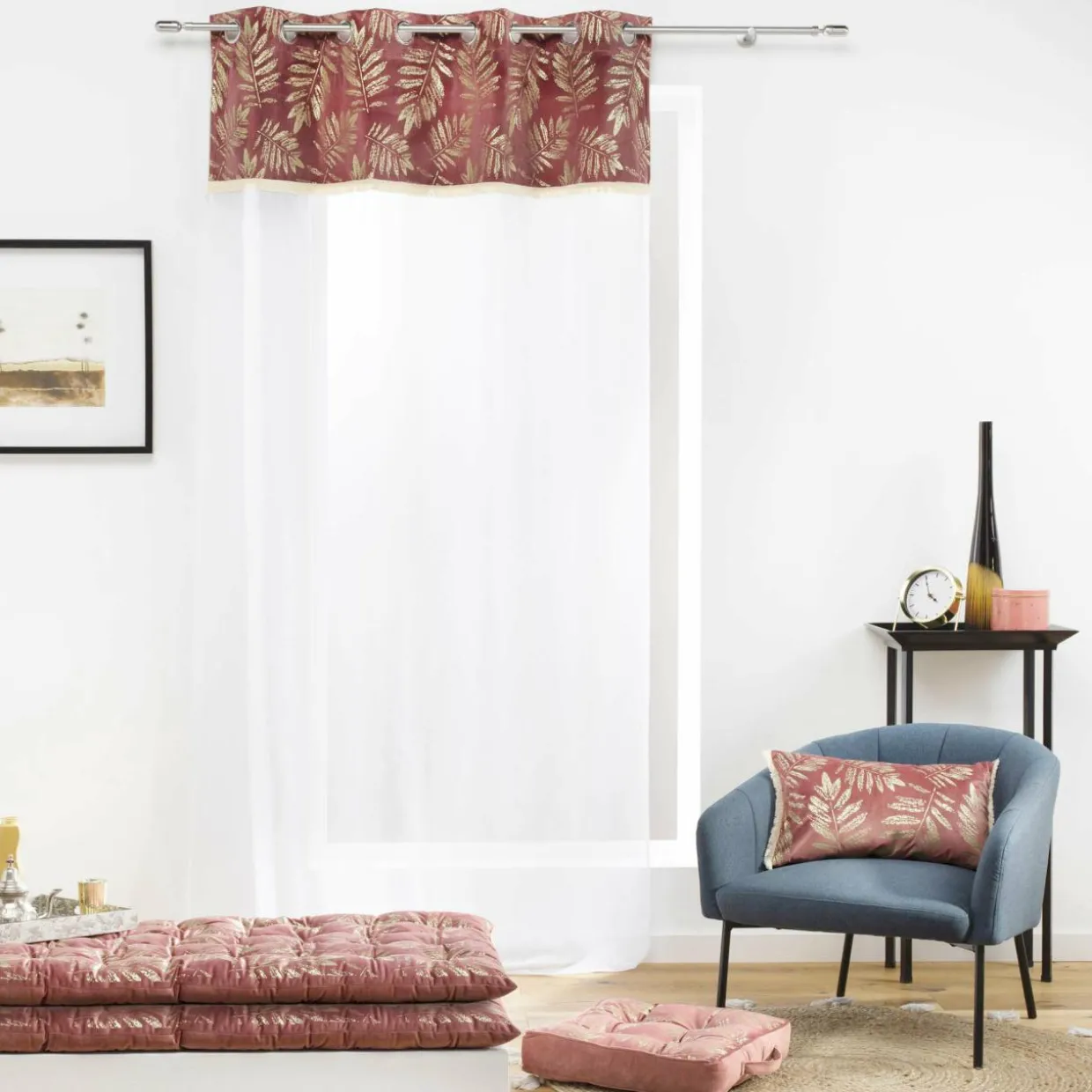 Couleur : fond rose et motif or.