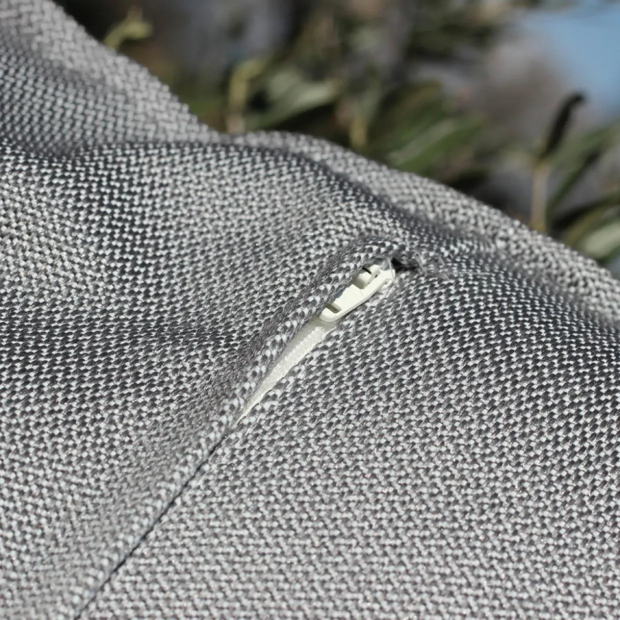 Finition : déhoussable avec fermeture zip et volant plat. Traitement anti-uv et depérlant.