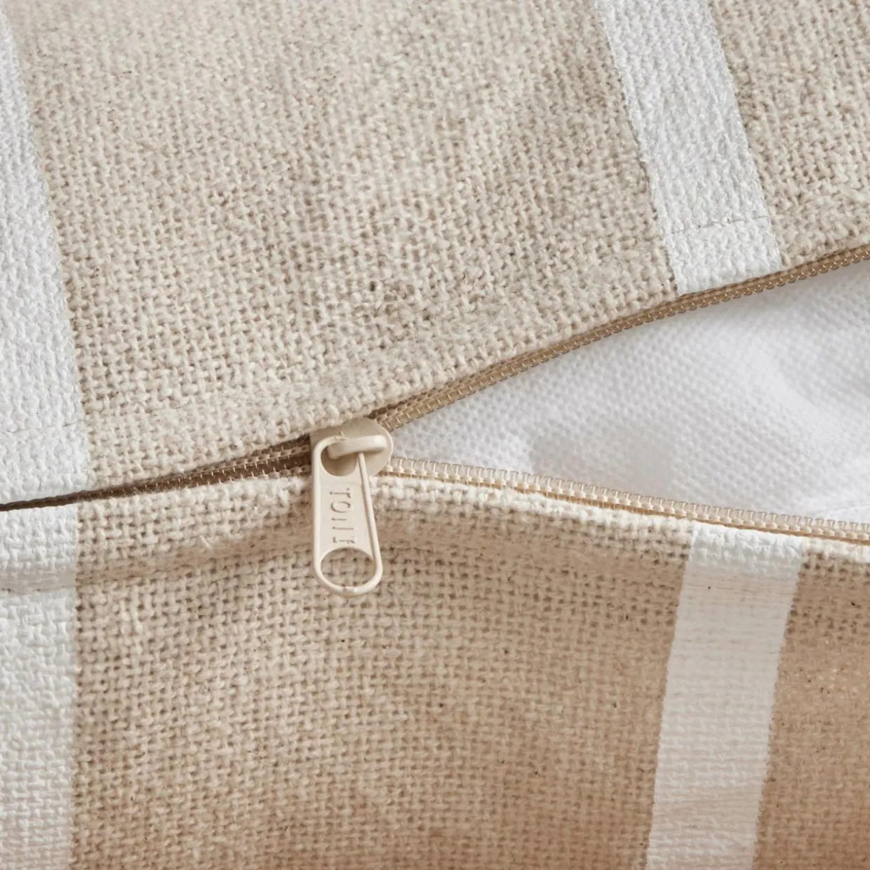 Apportez un petit air de vacances à votre déco avec ce coussin rayé et déperlant, en belle toile de coton imprimé.