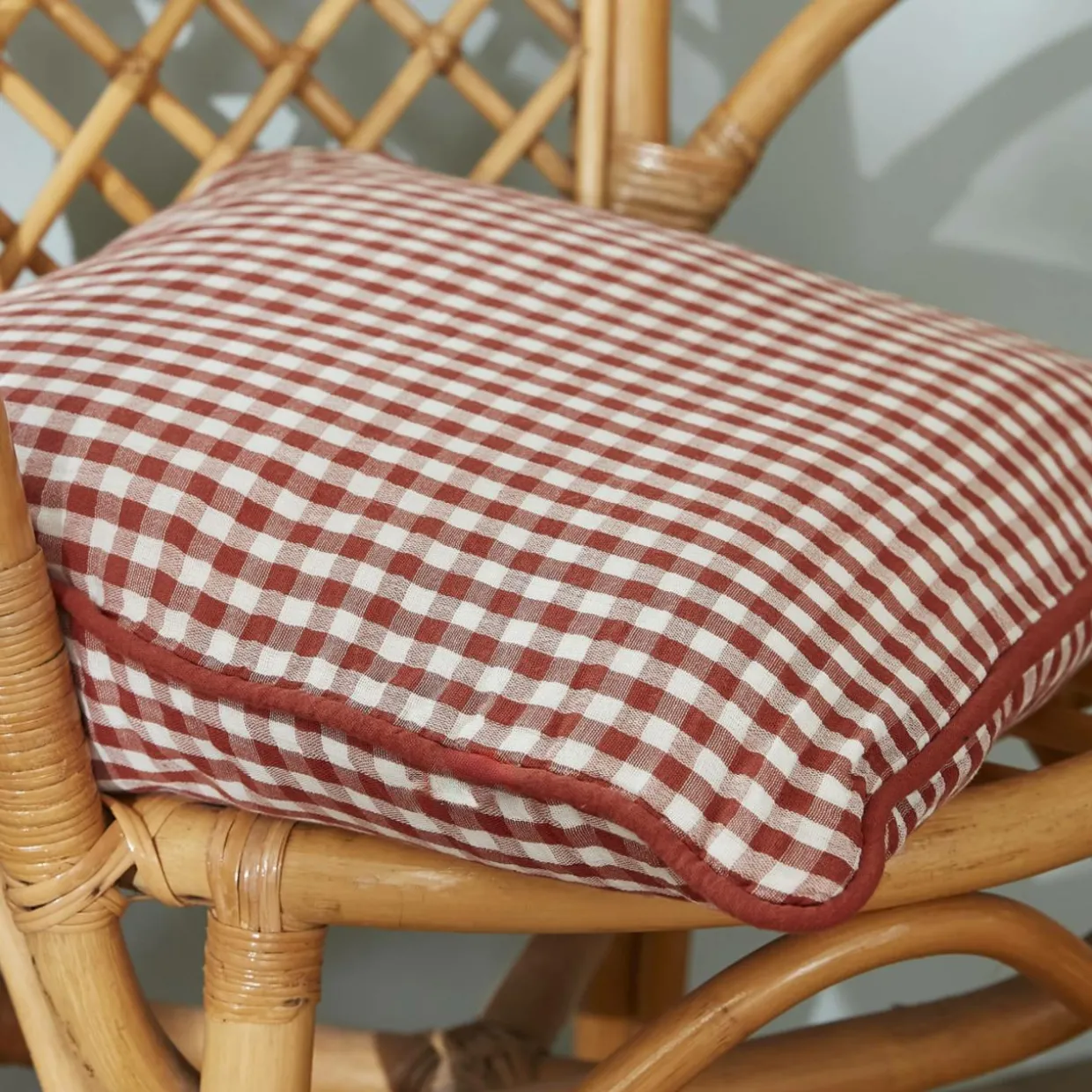 Imprimé : coussin à carreaux vichy recto et verso.