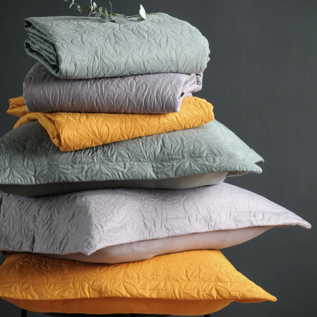 Imprimé : couvre-lit à motif feuillage.