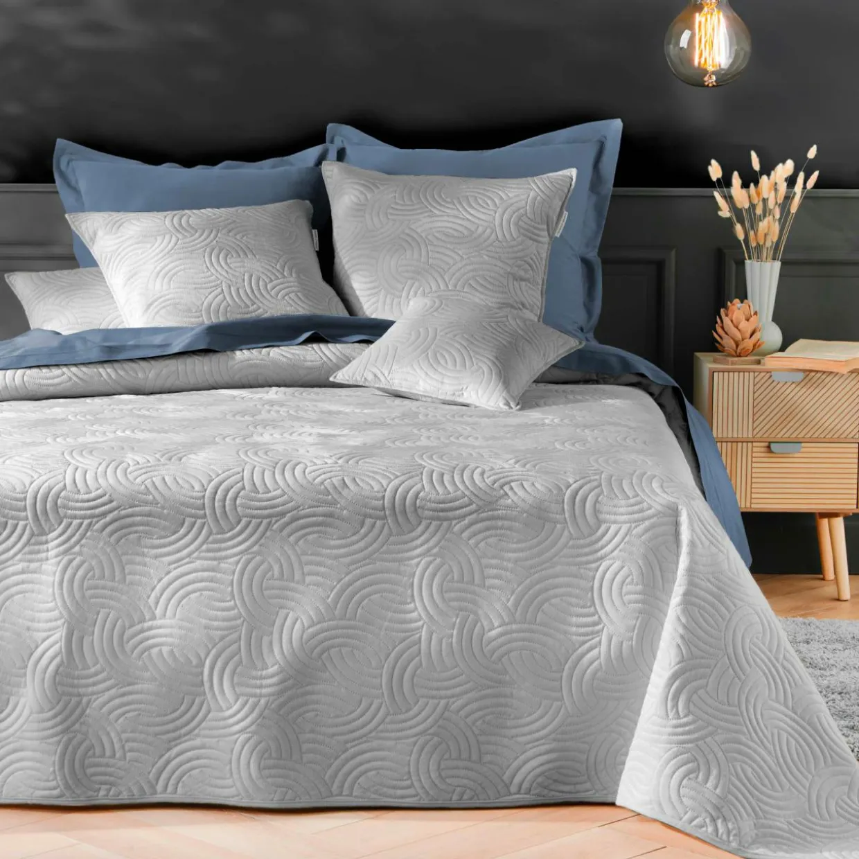 Ce couvre-lit matelassé Solange en velours gris apporte une touche d’élégance à votre chambre. Son motif graphique ajoute une note contemporaine à votre décoration.
