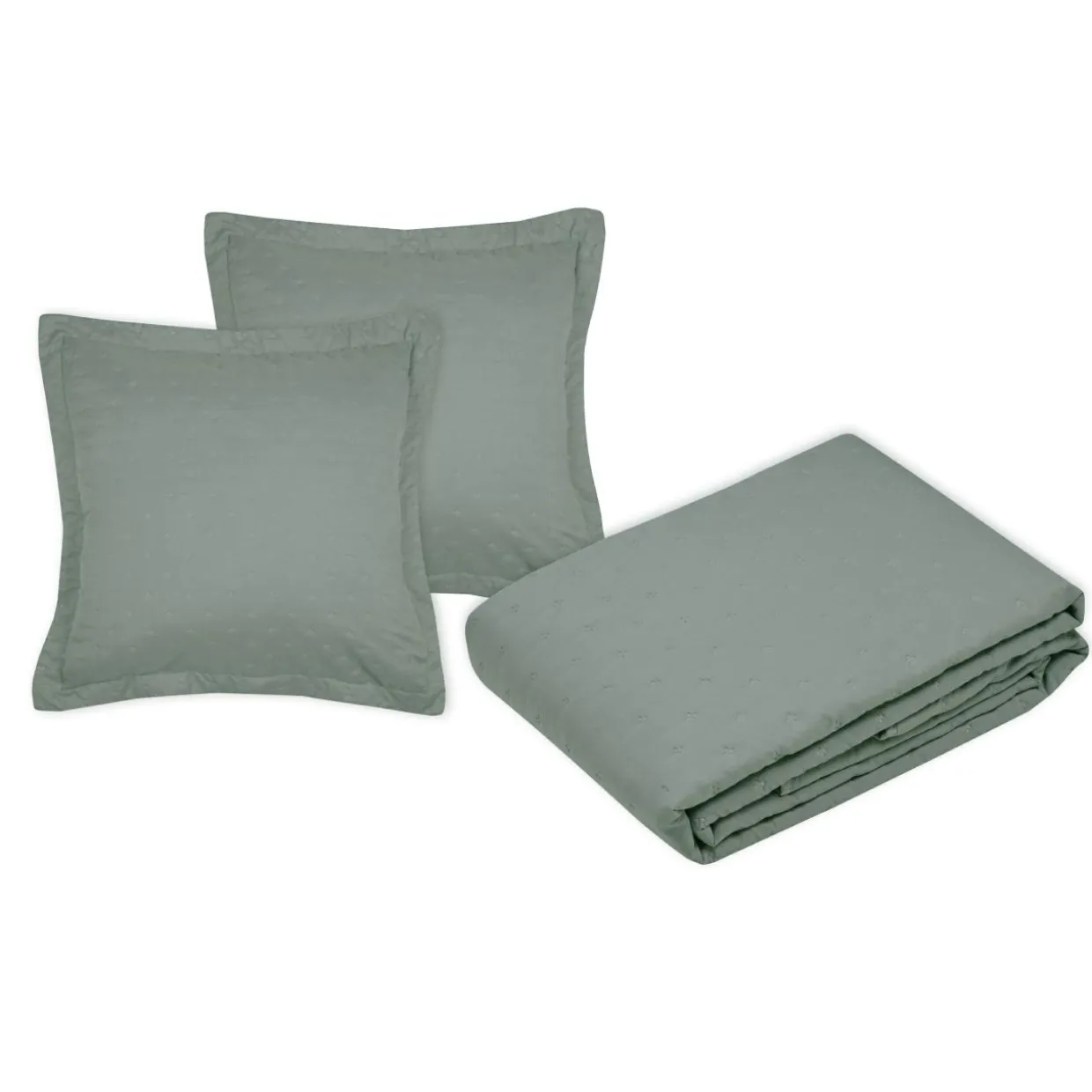 Offrez-vous un havre de paix avec ce boutis Cléo. Son toucher doux et sa couleur sauge apaisante transformeront votre chambre en un véritable cocon de douceur et de sérénité.