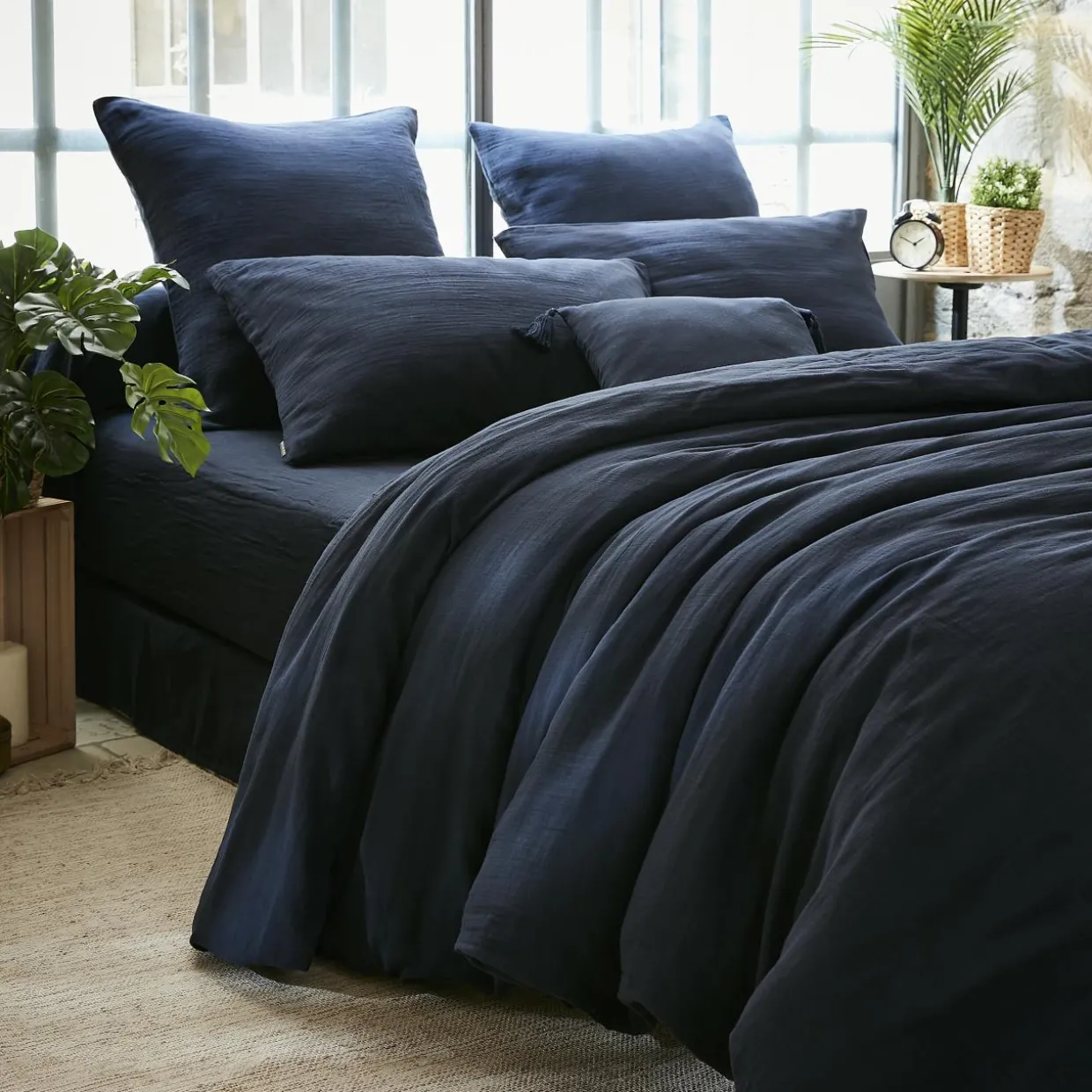 Drap housse gaze de coton (200 x 200 cm) Gaïa Bleu nuit