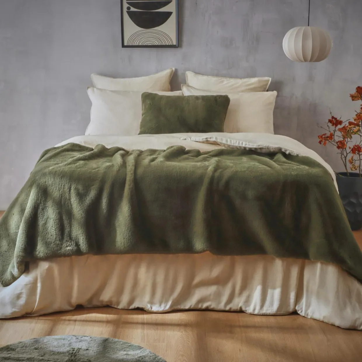Matière : 100 % polyester recto fausse fourrure (650 gr/m²), verso flanelle (240 gr/m²).
