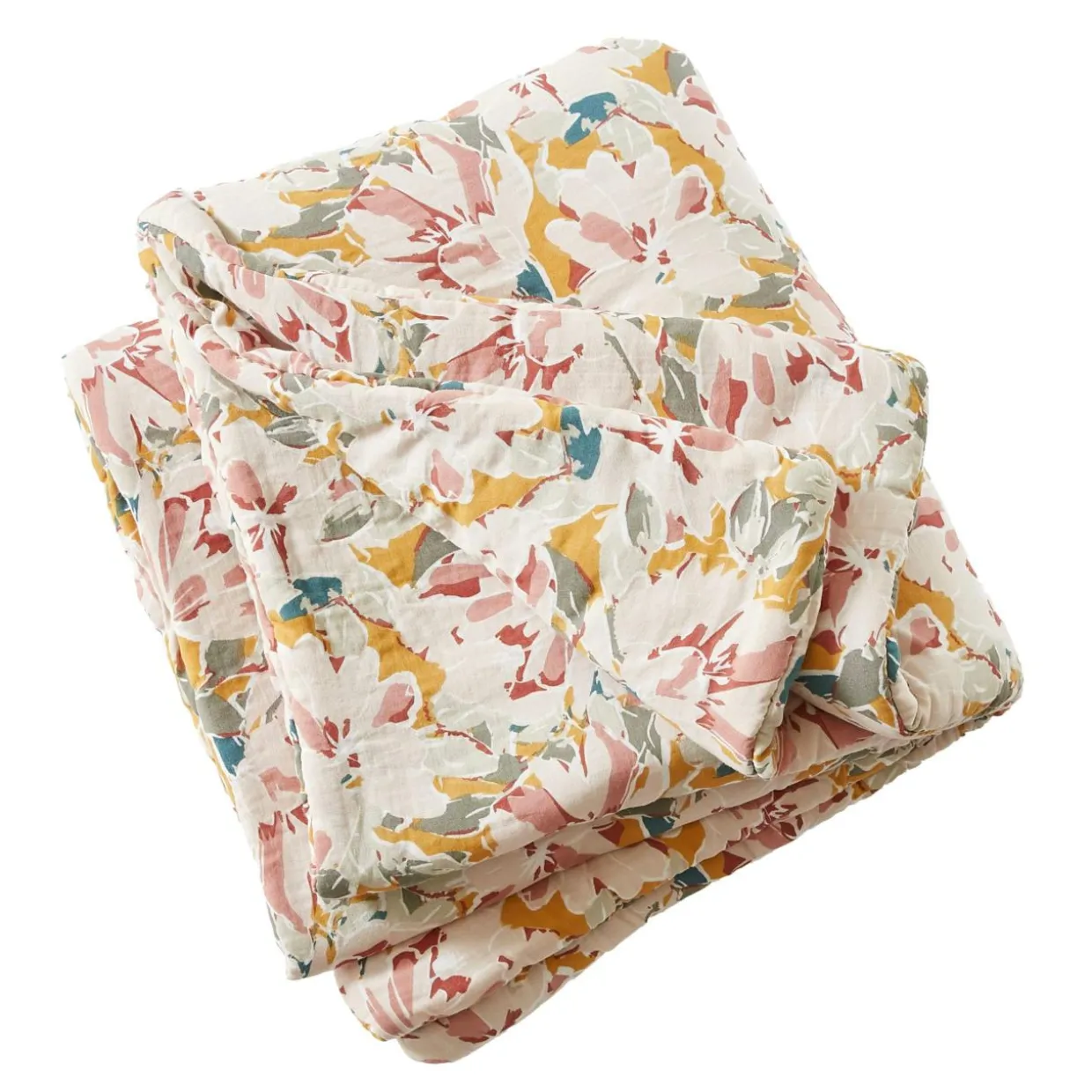 Confectionné en double gaze de coton, il séduit par ses motifs floraux délicats et ses couleurs claires, parfaites pour insuffler un esprit printanier dans le décor.