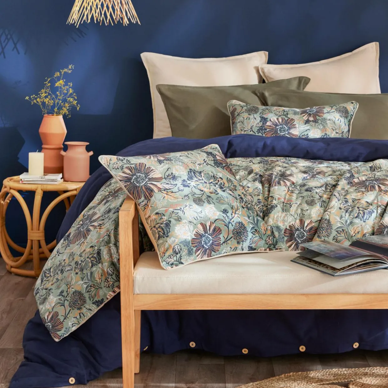 Matière : face avant 100% polyester velours (220 gr/m²), face arrière 100 % coton chambray (185 gr/m²). Garnissage : 100% polyester.