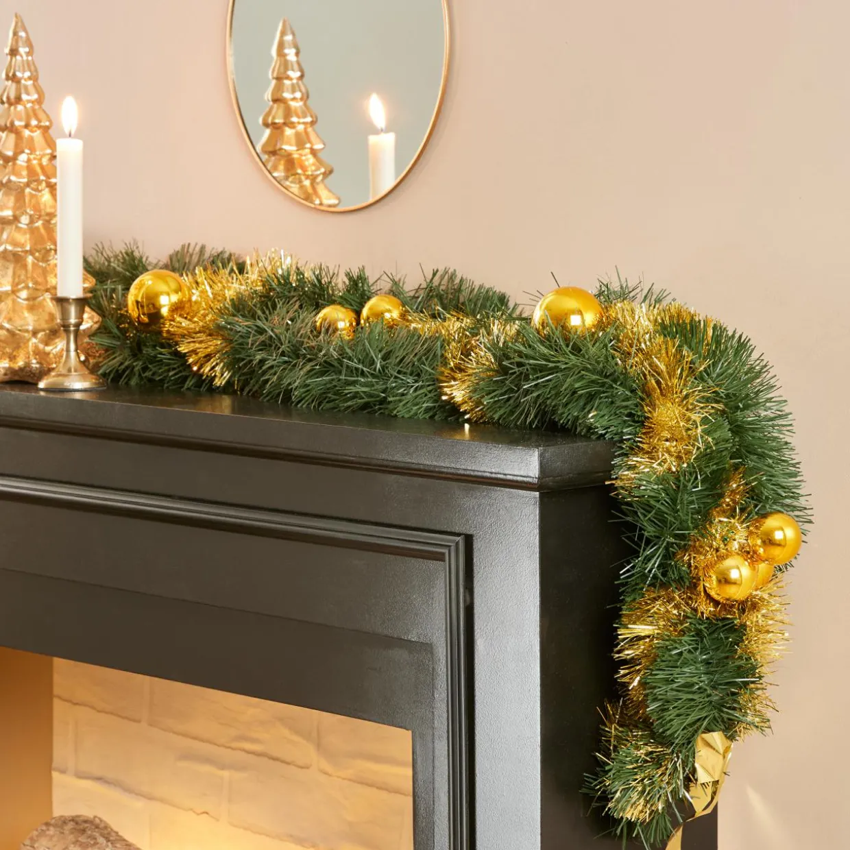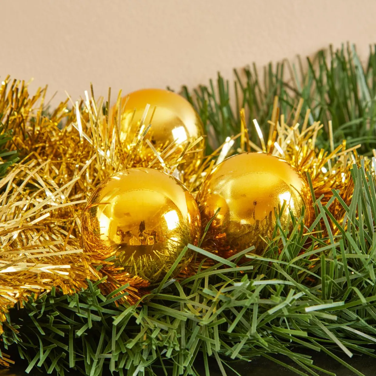 Matière : branches de sapin artificielles et boules de Noël en plastique.