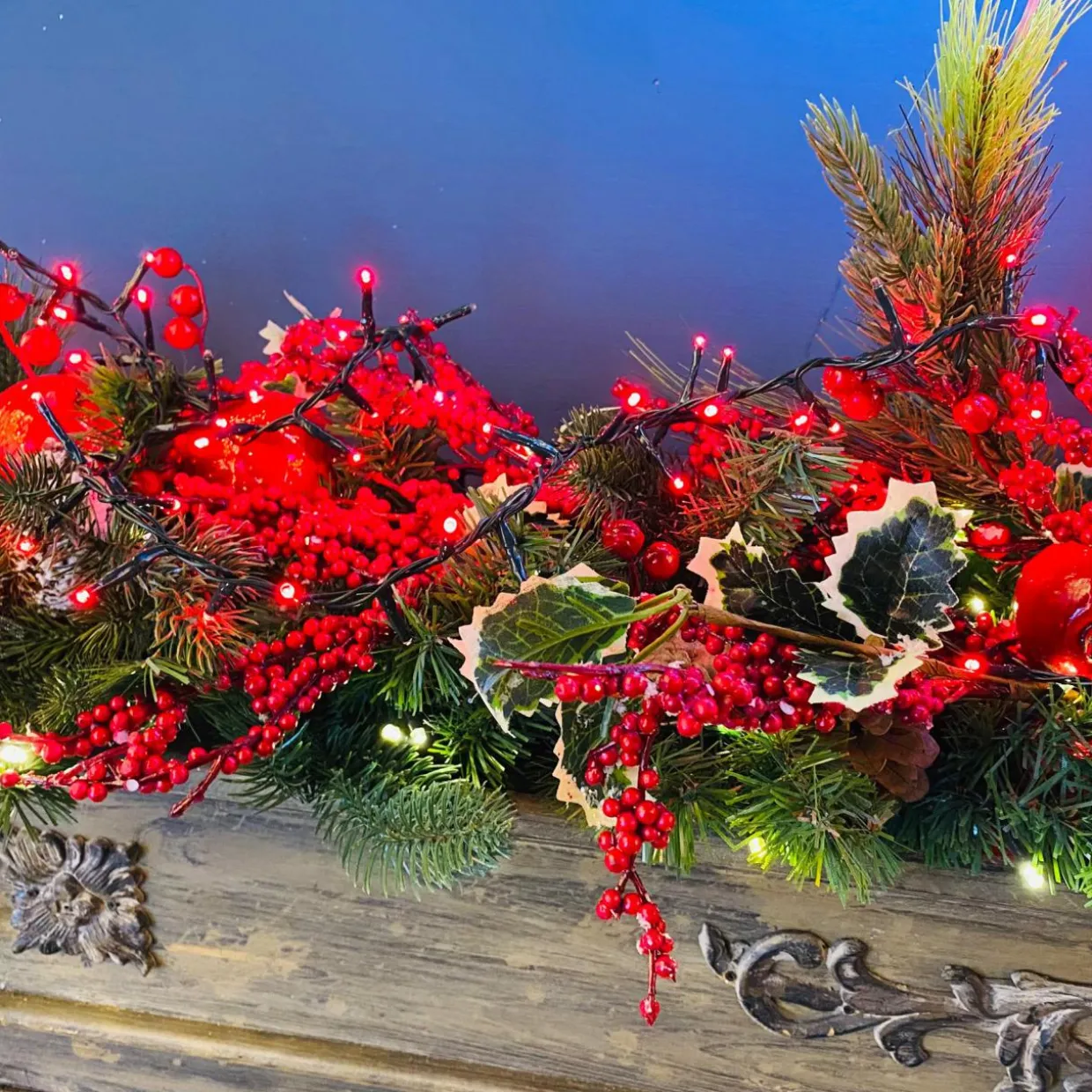 Mode de fonctionnement : 104 LED rouge fixes et 24 LED blanc chaud flash clignotantes. Cette guirlande consomme 0.0036 Kwh par heure d’utilisation.