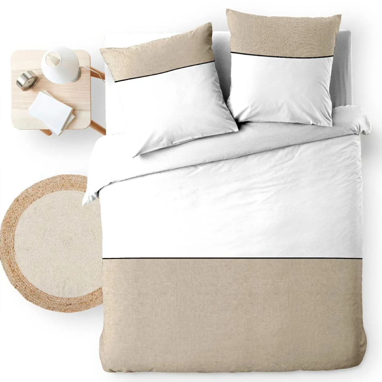 Cette parure de lit Gabrielle en coton uni et tissé bicolore beige et blanc apporte une touche d’élégance et de douceur à votre chambre. Son design sobre et chic s’adapte facilement à tous les styles d’intérieur.