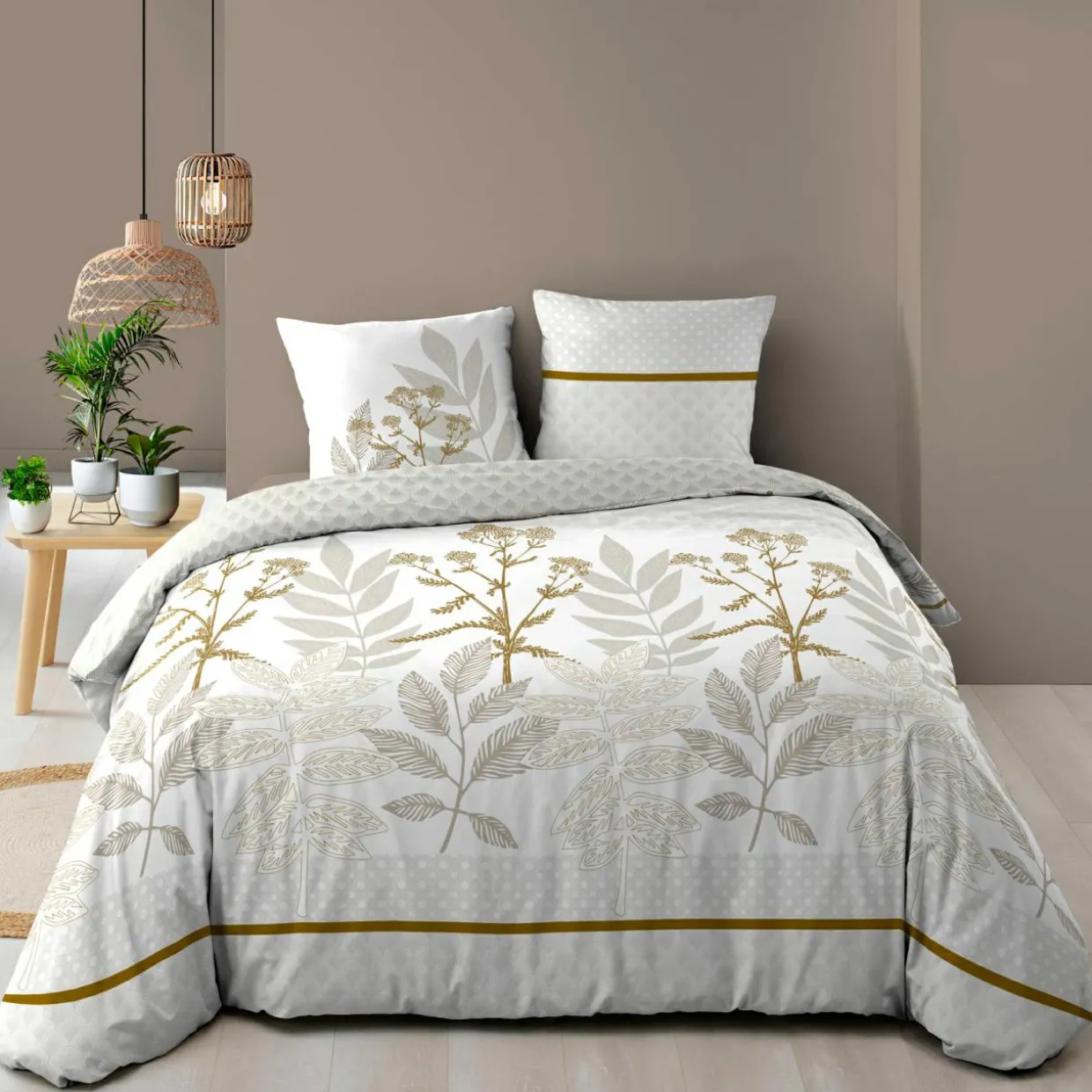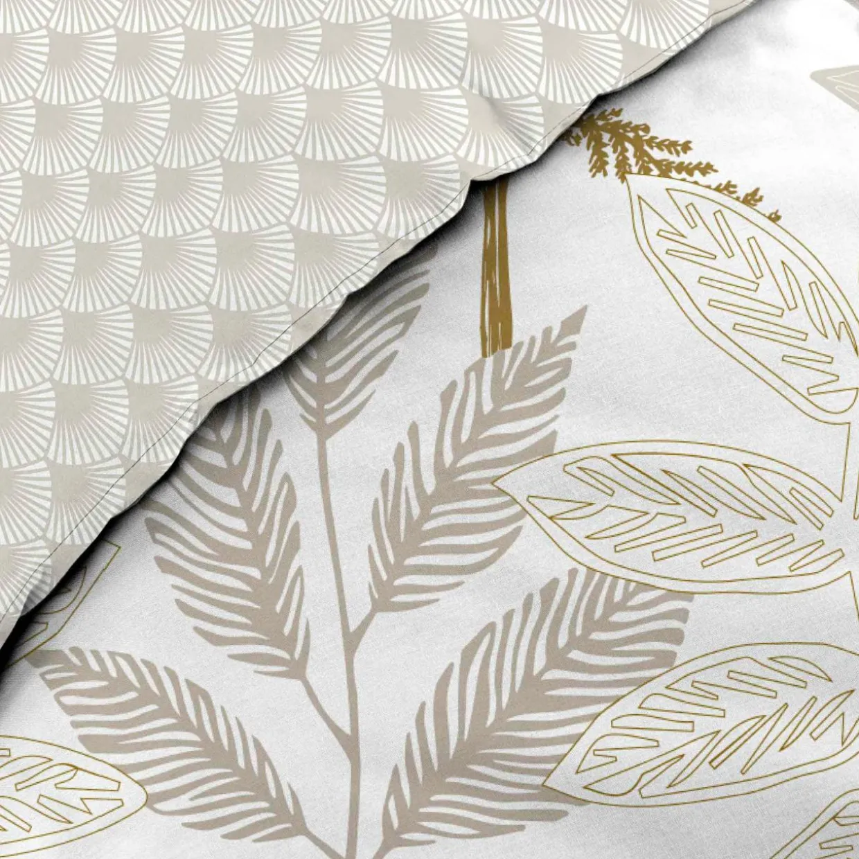 Cette parure de lit Raoni en coton apporte une touche de douceur et de nature à votre chambre. Son motif floral beige et blanc crée une ambiance apaisante et chaleureuse.