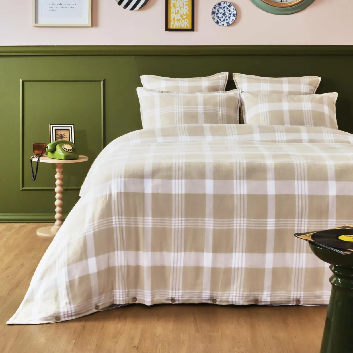 Découvrez le confort enveloppant de notre housse de couette en flanelle de coton, idéale pour agrémenter vos nuits d’automne et d’hiver. Sa texture douce et moelleuse promet des moments de détente inégalés, tout en apportant une touche élégante à votre chambre.