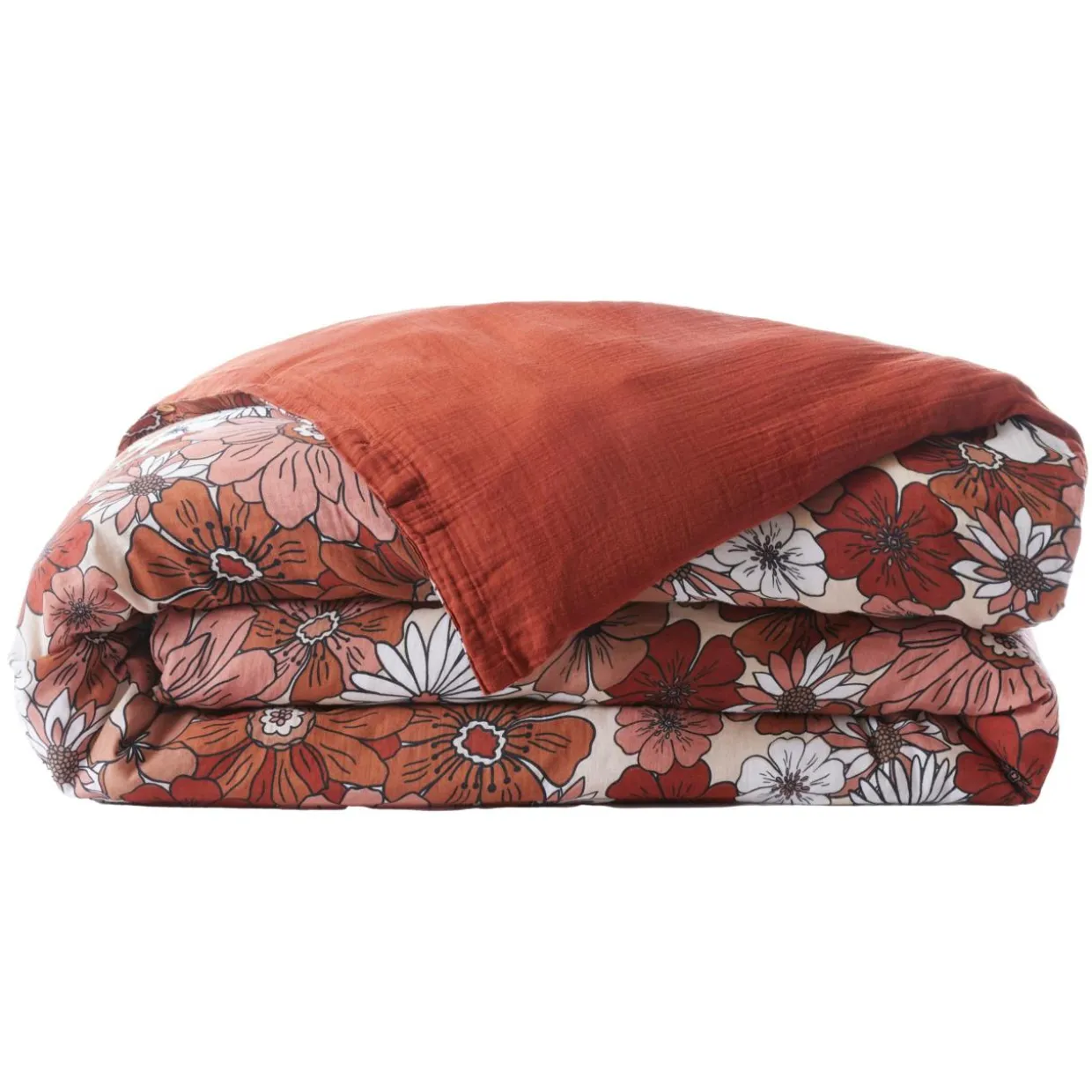Housse de couette gaze de coton (260 x 240 cm) Gaïa azalée Terracotta