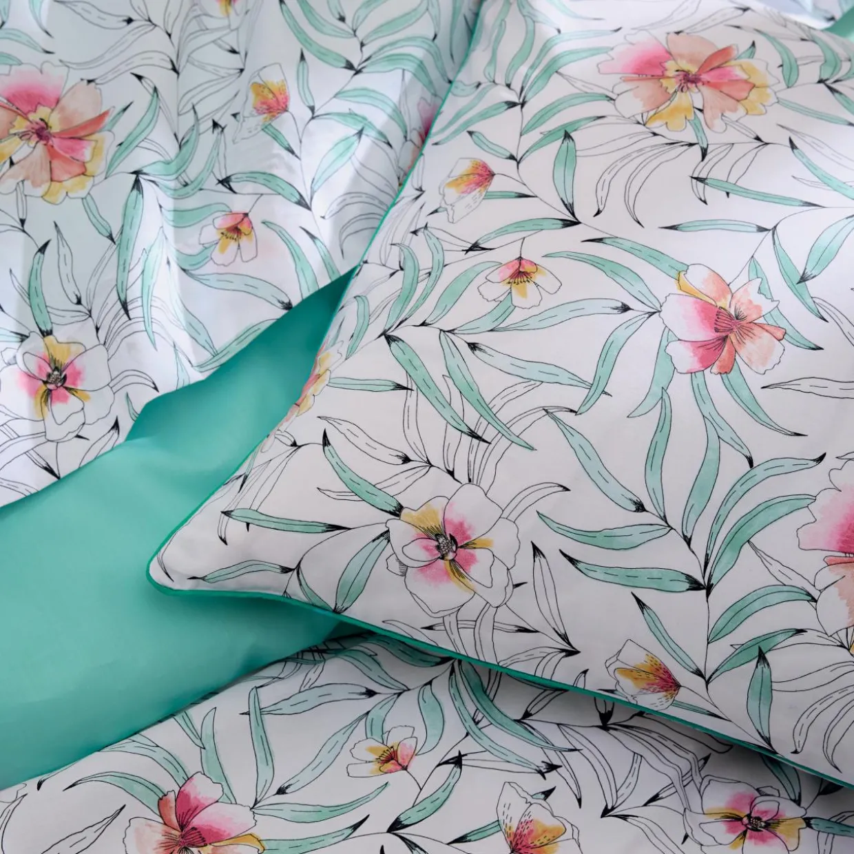 Imprimé housse de couette motif végétal au recto et unie au verso.
