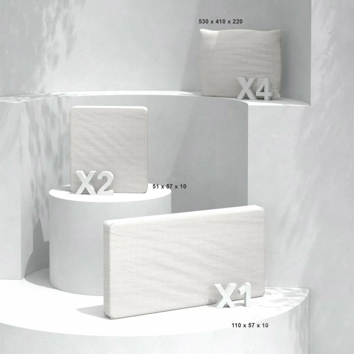 – Assise canapé 2 places : longueur 108 x largeur 59 x hauteur 10 cm.