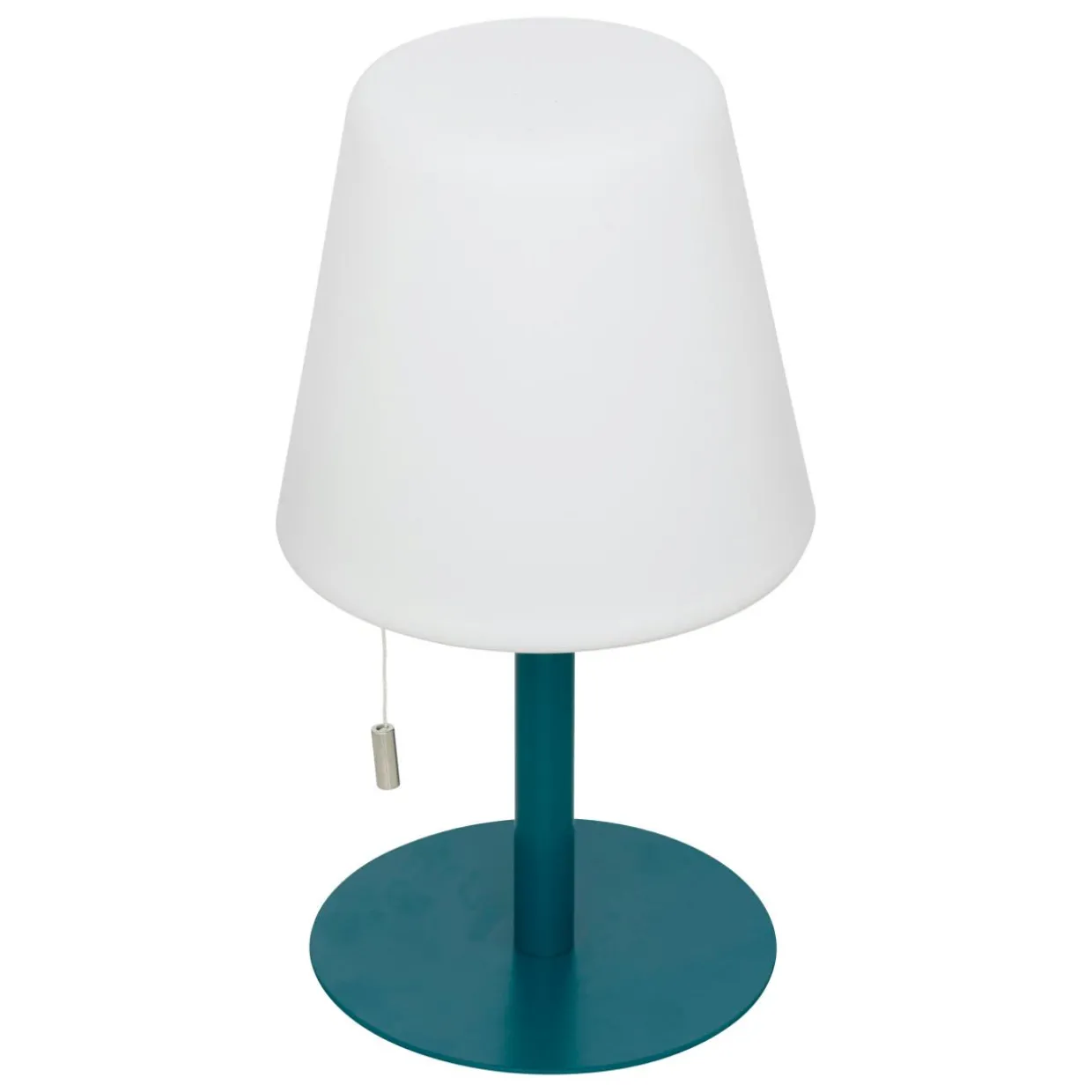 Couleur : pied bleu canard et abat-jour blanc.