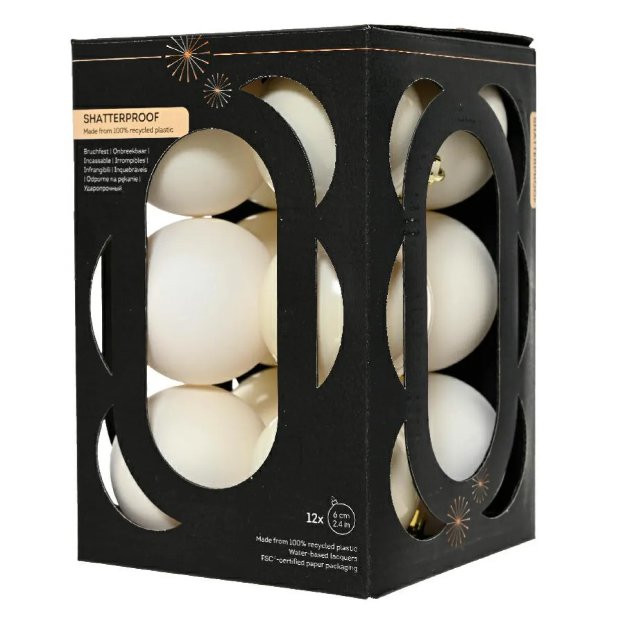 Informations complémentaires : vendu en lot de 12 boules (6 boules brillantes et 6 boules mates). Emballage 100% recyclé certifié FSC. Suspension comprise.