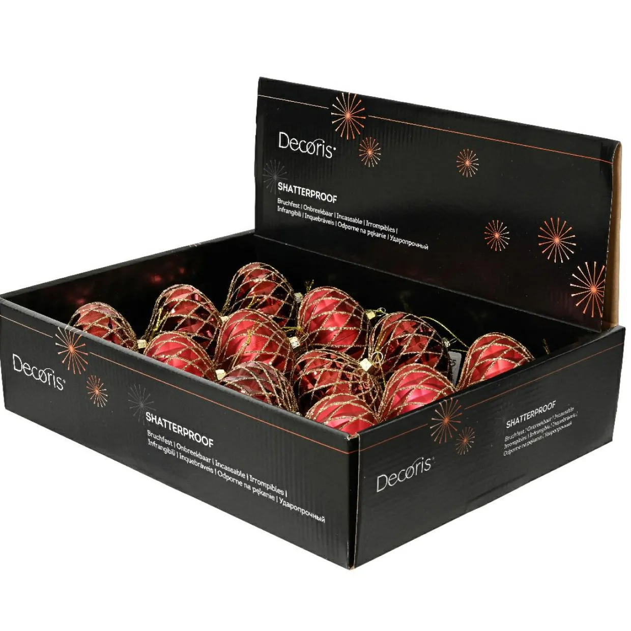 Ces 12 boules de Noël Natale Prezioso apporteront une touche de glamour à votre sapin avec leur couleur bordeaux pailletée d’or. Idéales pour créer une ambiance festive et chaleureuse, elles illumineront vos fêtes de fin d’année et émerveilleront petits et grands.