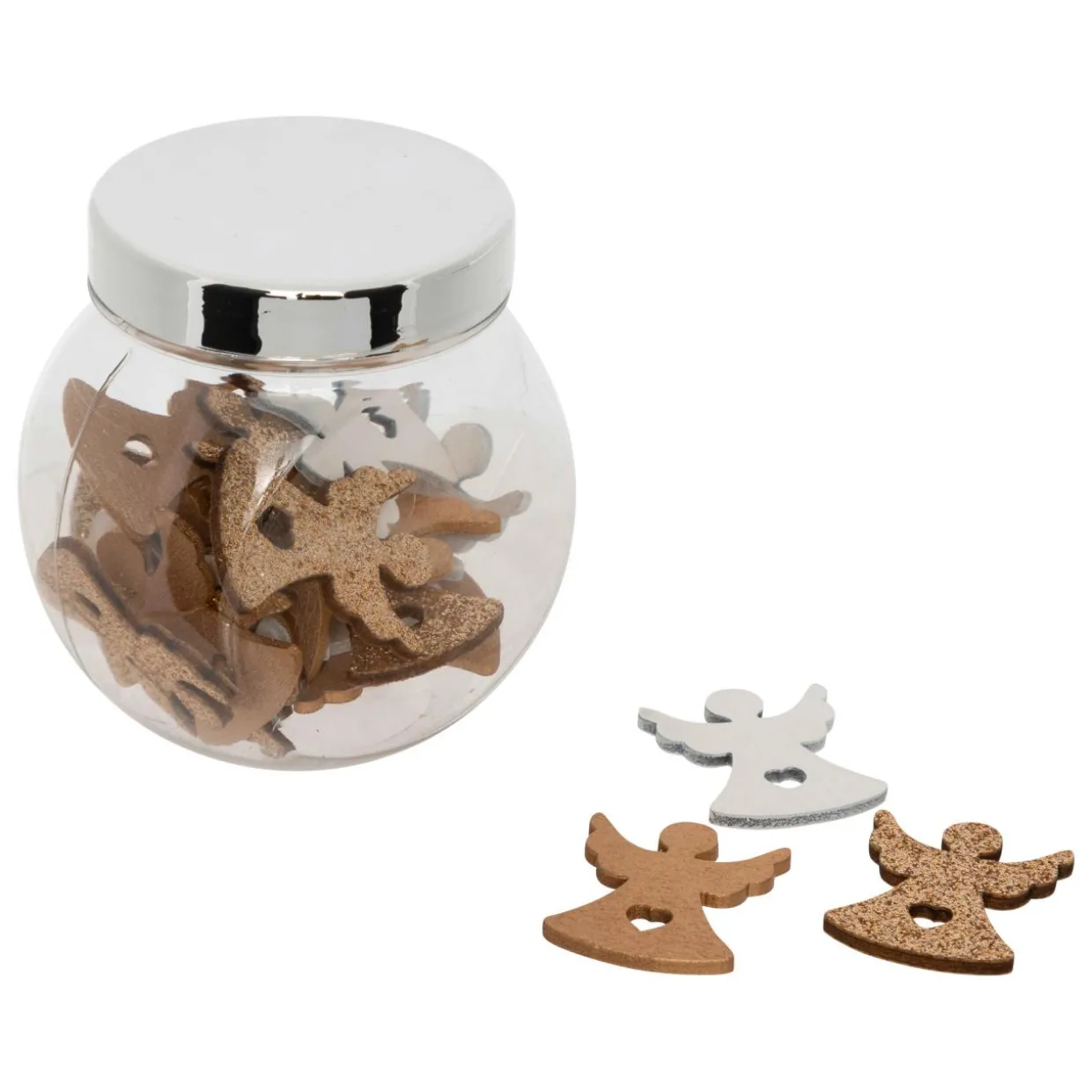 Ces petits anges en bois doré et blanc apporteront une touche festive à votre table de Noël. Parsemés sur votre nappe, ils créent une ambiance douce et chaleureuse, parfaite pour les fêtes de fin d’année.