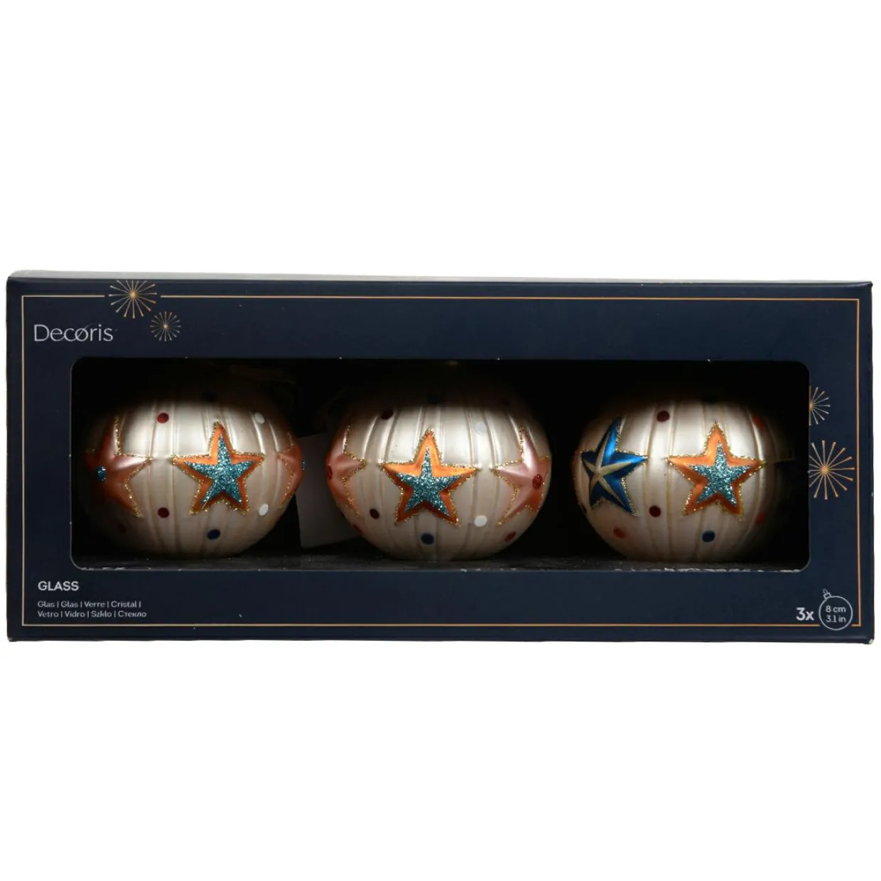 Informations complémentaires : lot de 3 boules. Les boules sont munies d’une suspension comprise de couleur or.