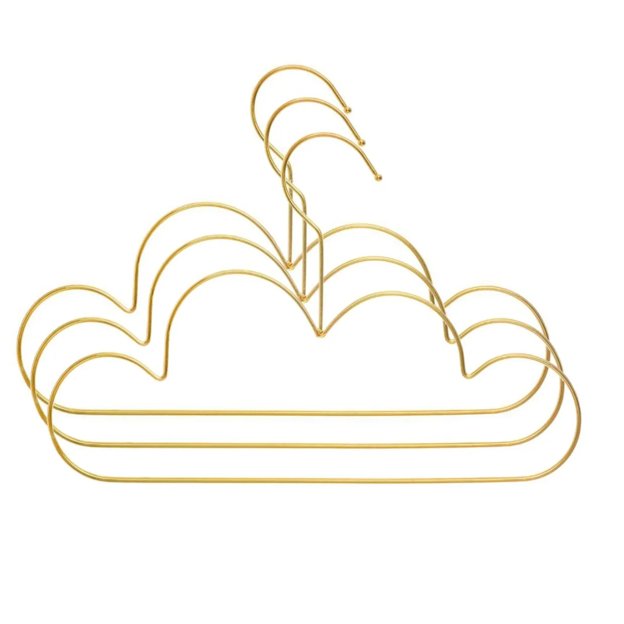 Un lot de cintres en métal doré pour ranger les vêtements de votre enfant avec style.