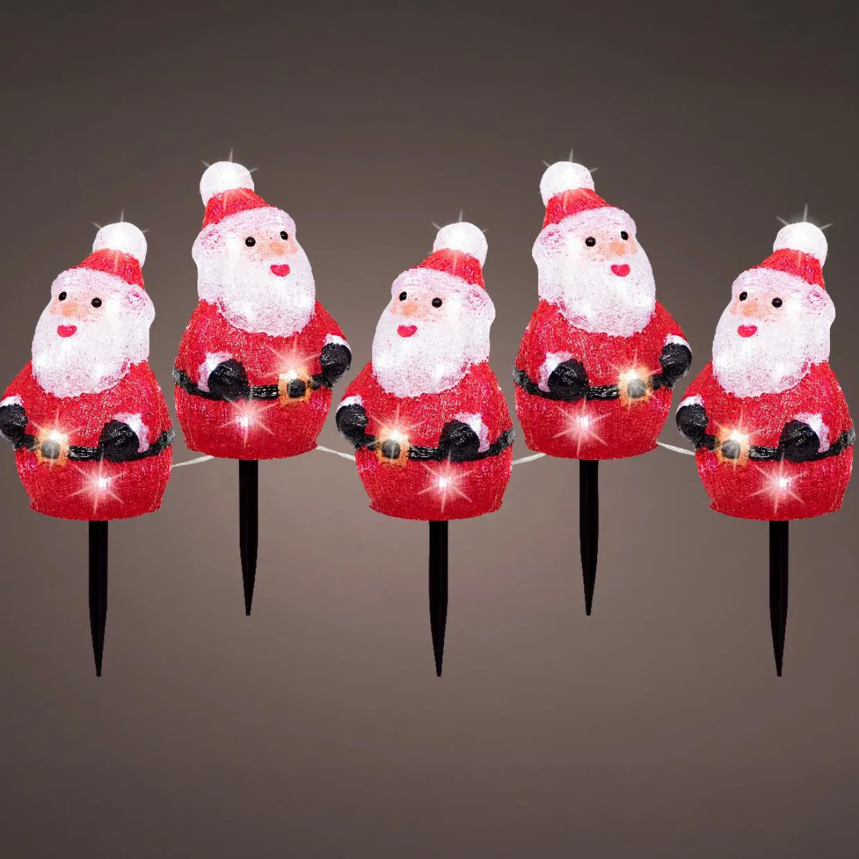 Illuminez votre jardin avec ce lot de 5 piquets de jardin lumineux représentant le Père Noël. Avec leurs 100 LED blanc froid, ils apporteront une touche festive et chaleureuse à votre extérieur. Idéal pour les fêtes de fin d’année, ce lot de piquets de jardin saura ravir petits et grands et apporter une ambiance féerique à votre décoration de Noël.