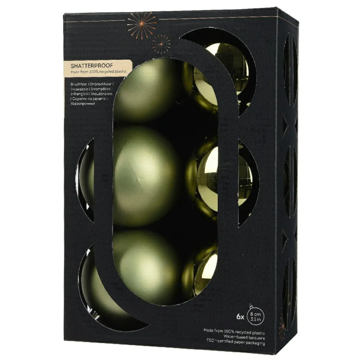 Lot de 6 boules de Noël (D80 mm) Aravis Vert romarin
