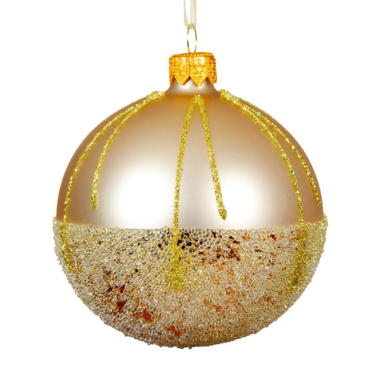 Lot de 6 boules de Noël en verre (D80 mm) Ballotine Perle