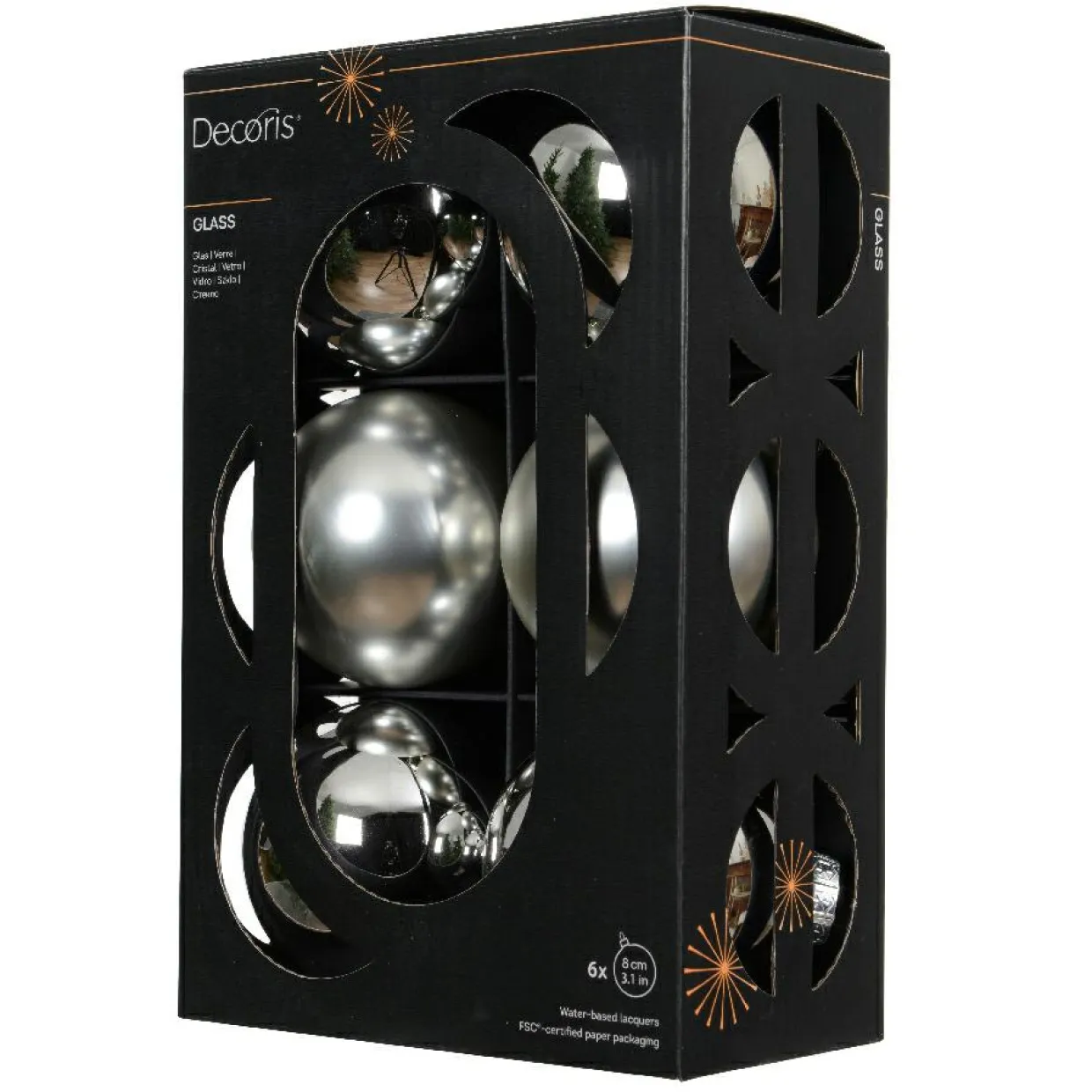 Informations complémentaires : lot de 6 boules, 2 mates et 4 brillantes. Livrées dans un emballage 100% recyclé certifié FSC. Boules munies d’une attache de couleur argent.