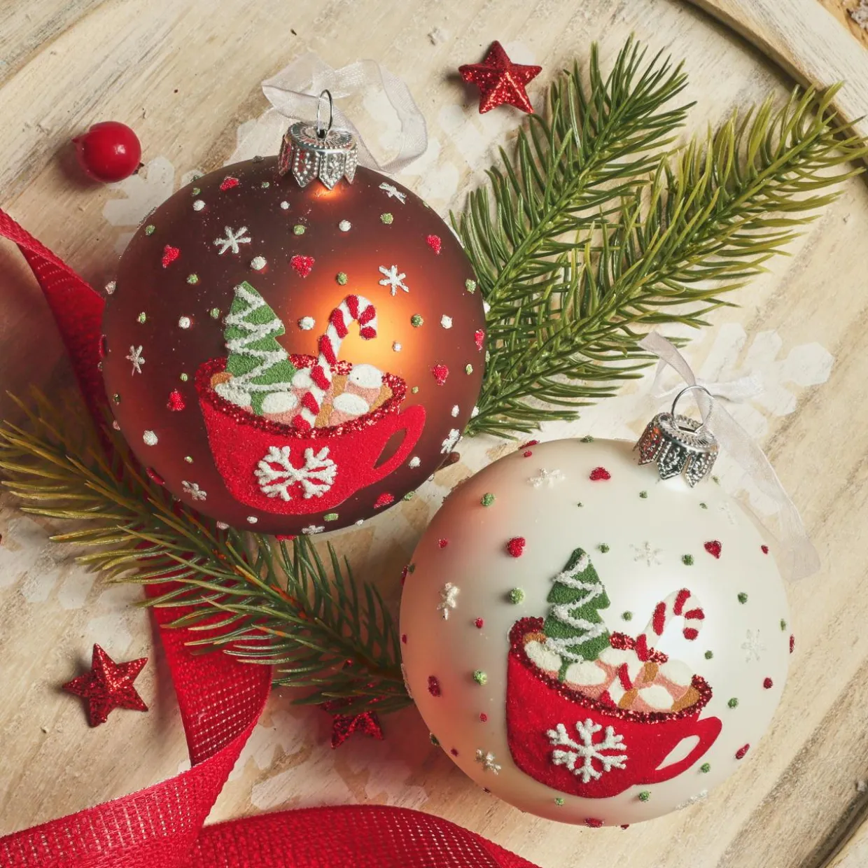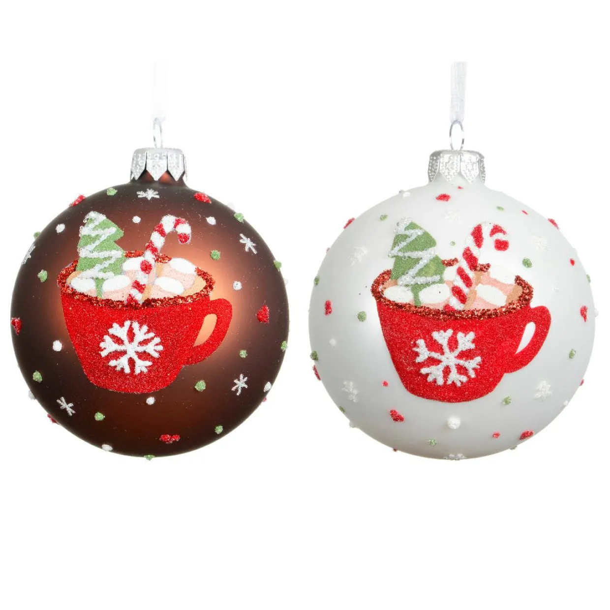 Informations complémentaires : lot de 6 boules de Noël. 3 de couleur blanc hiver et 3 de couleur brun café. Les boules sont munies d’une attache de couleur argentée.