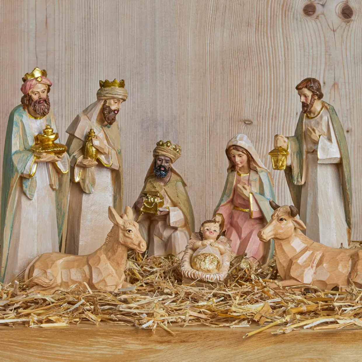 Ce lot de 8 santons de Gioia, aux couleurs pastel et dorure, apportera une touche de chaleur à votre décoration de Noël. Chaque santon, minutieusement peint à la main, représente un personnage de la nativité, ajoutant une dimension spirituelle et traditionnelle à votre fête.