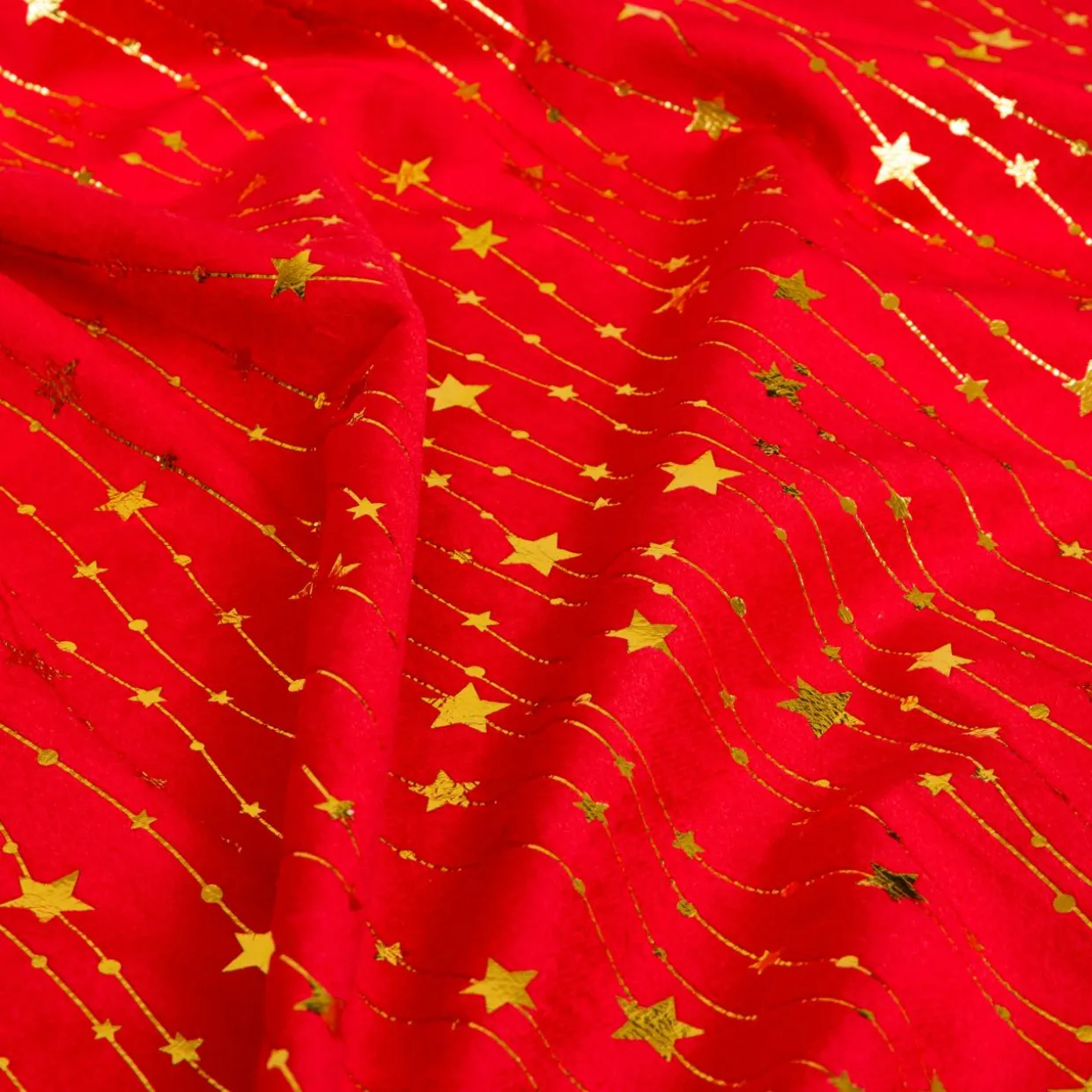Cette nappe de Noël rectangulaire est une véritable pluie d’étoiles pour votre table de fête. Avec ses motifs or sur fond rouge, elle apporte une touche festive et chaleureuse à votre décoration.