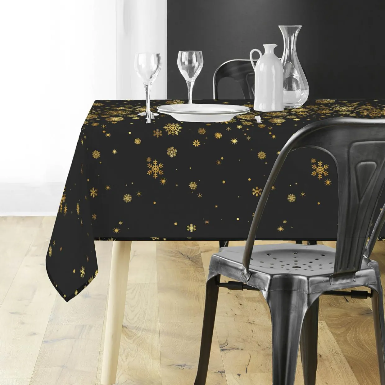 Cette nappe de Noël rectangulaire de la gamme Constellation apportera une touche festive à votre table. Avec ses motifs dorés sur fond noir, elle créera une ambiance chaleureuse et élégante pour vos repas de fêtes.