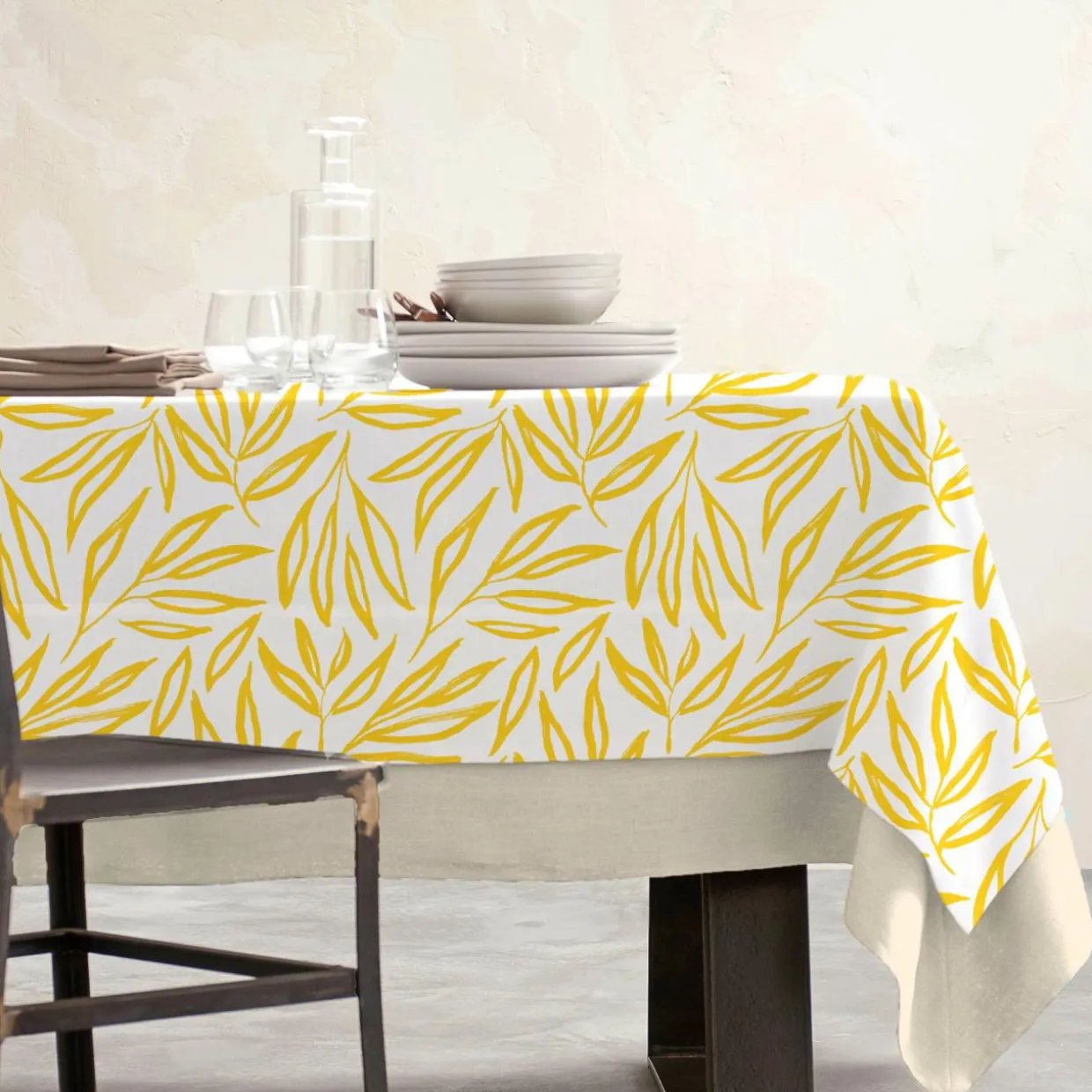 Nappe rectangulaire coton enduit (150 x 350 cm) Galice Jaune moutarde