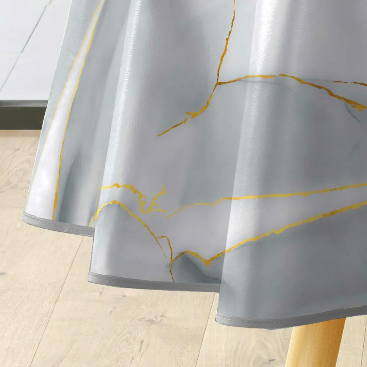 Cette nappe ronde Marbrelle apporte une touche d’élégance à votre table avec son motif marbre pailleté. Son revêtement en PVC la rend imperméable, idéale pour les repas en famille ou entre amis.