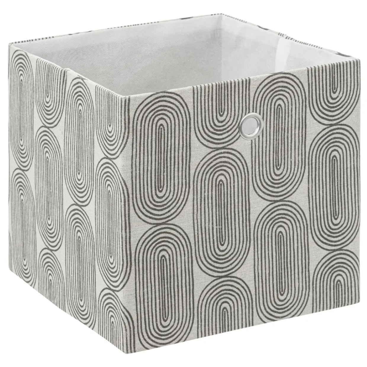 Imprimé : panier à motif graphique et à couvercle.