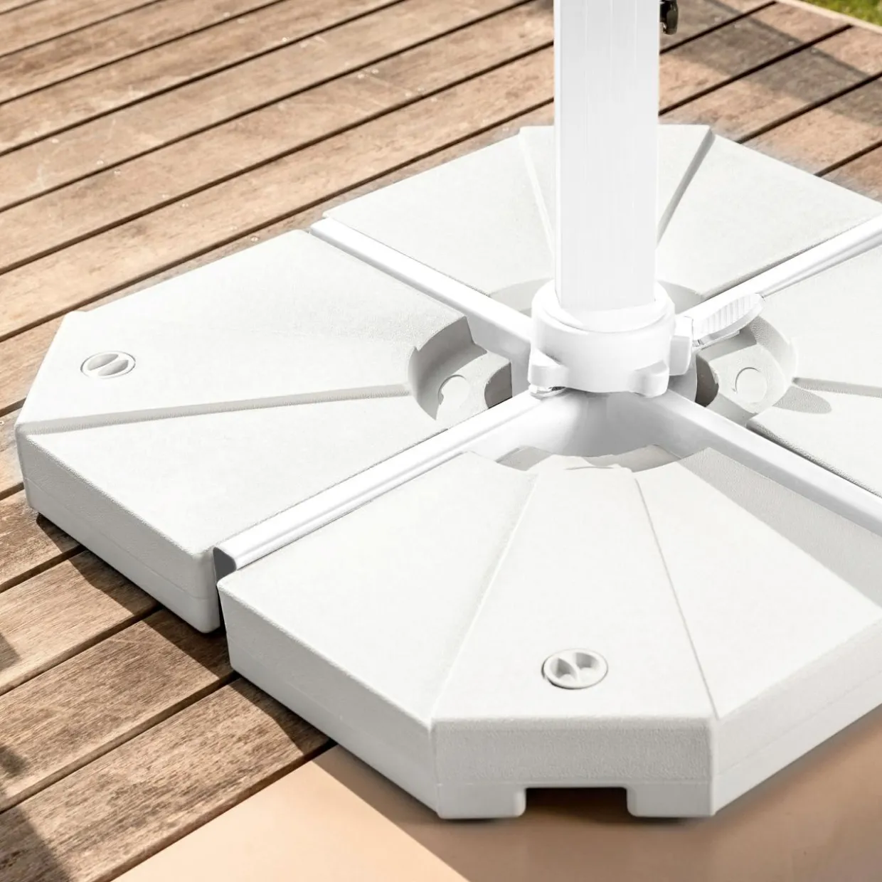 Sa toile est amovible et lavable. Il est vivement conseillé de détacher sa toile durant les fortes intempéries, et de protéger votre parasol grâce à une housse de protection.