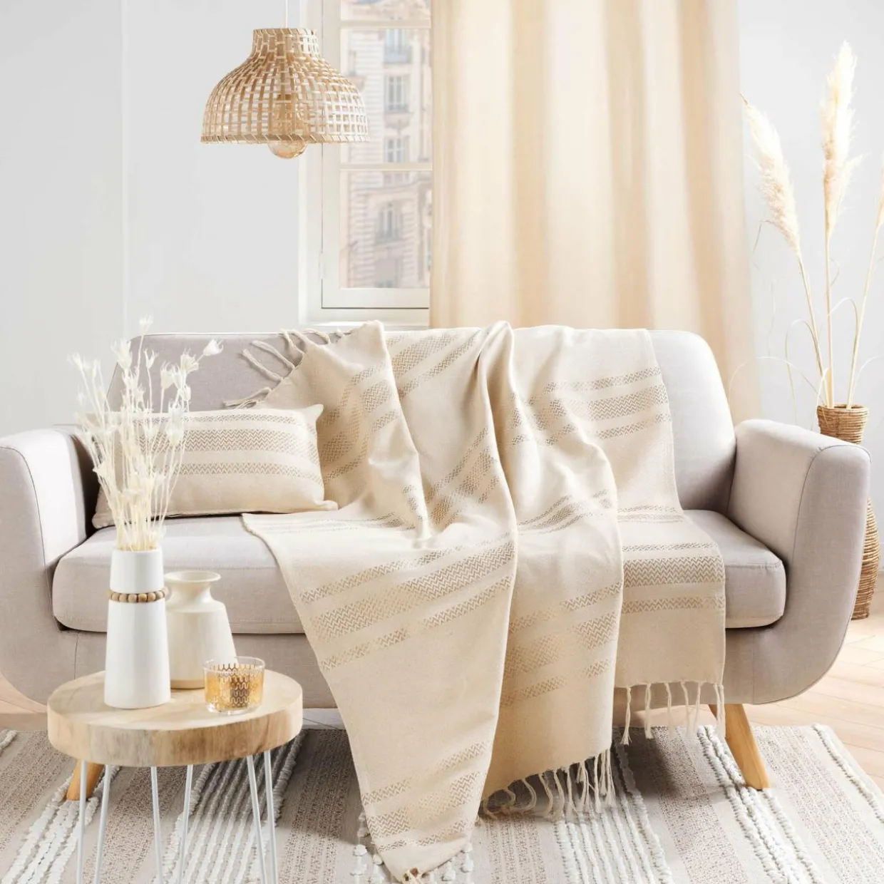 Imprimé : plaid à rayures et à franges.