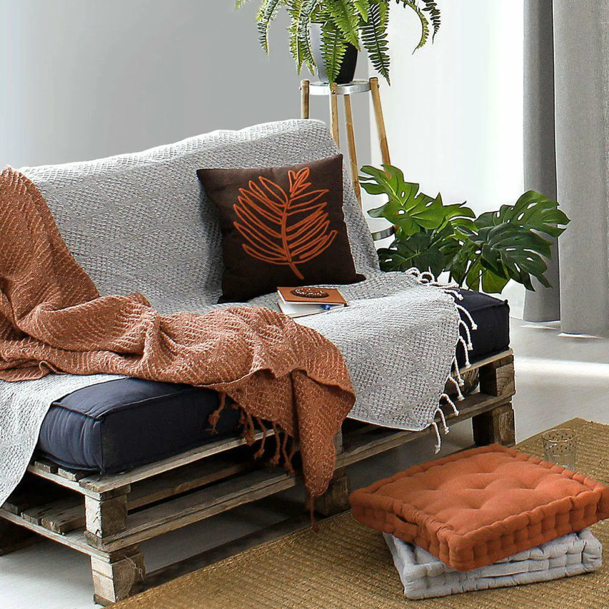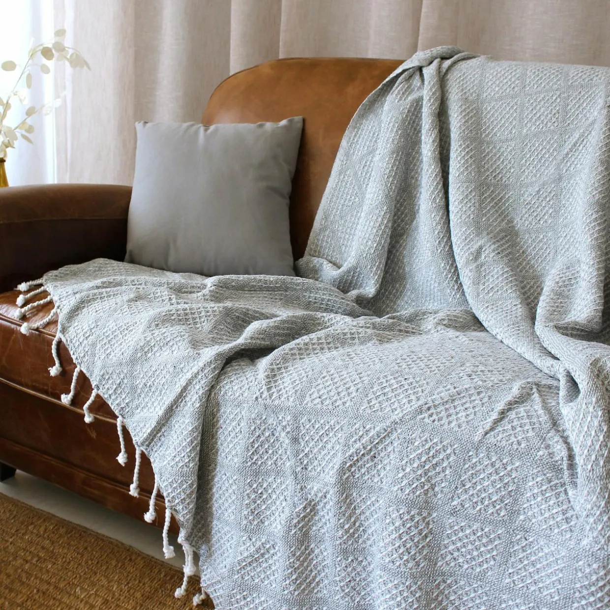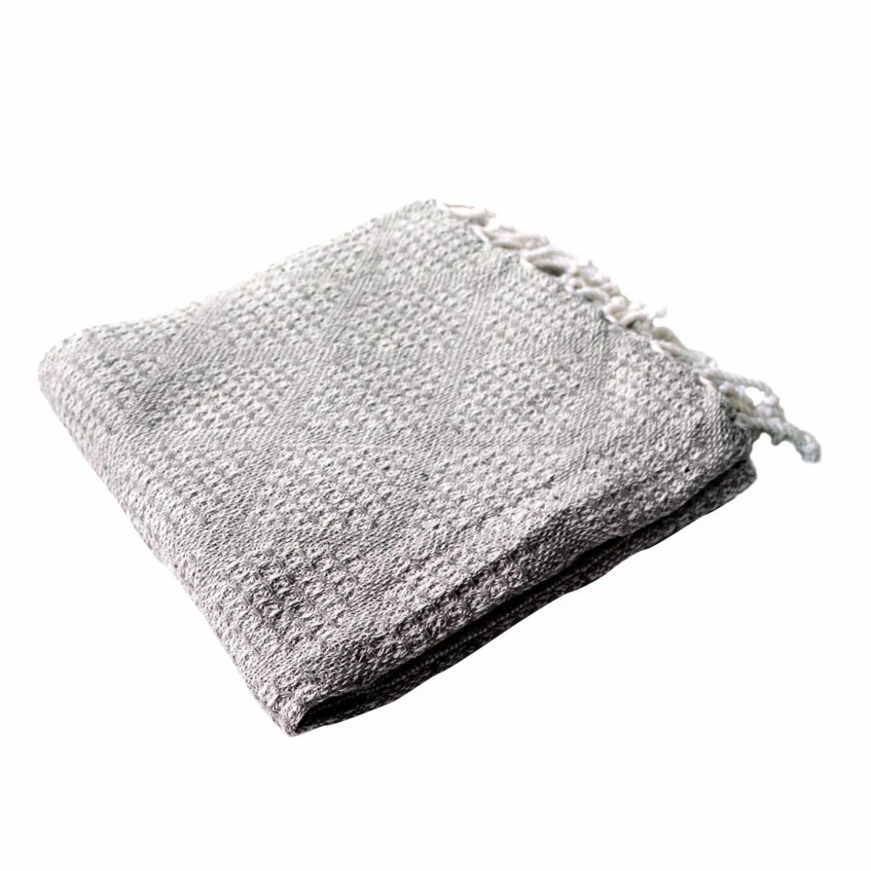 Finition : plaid à franges, effet tricot.