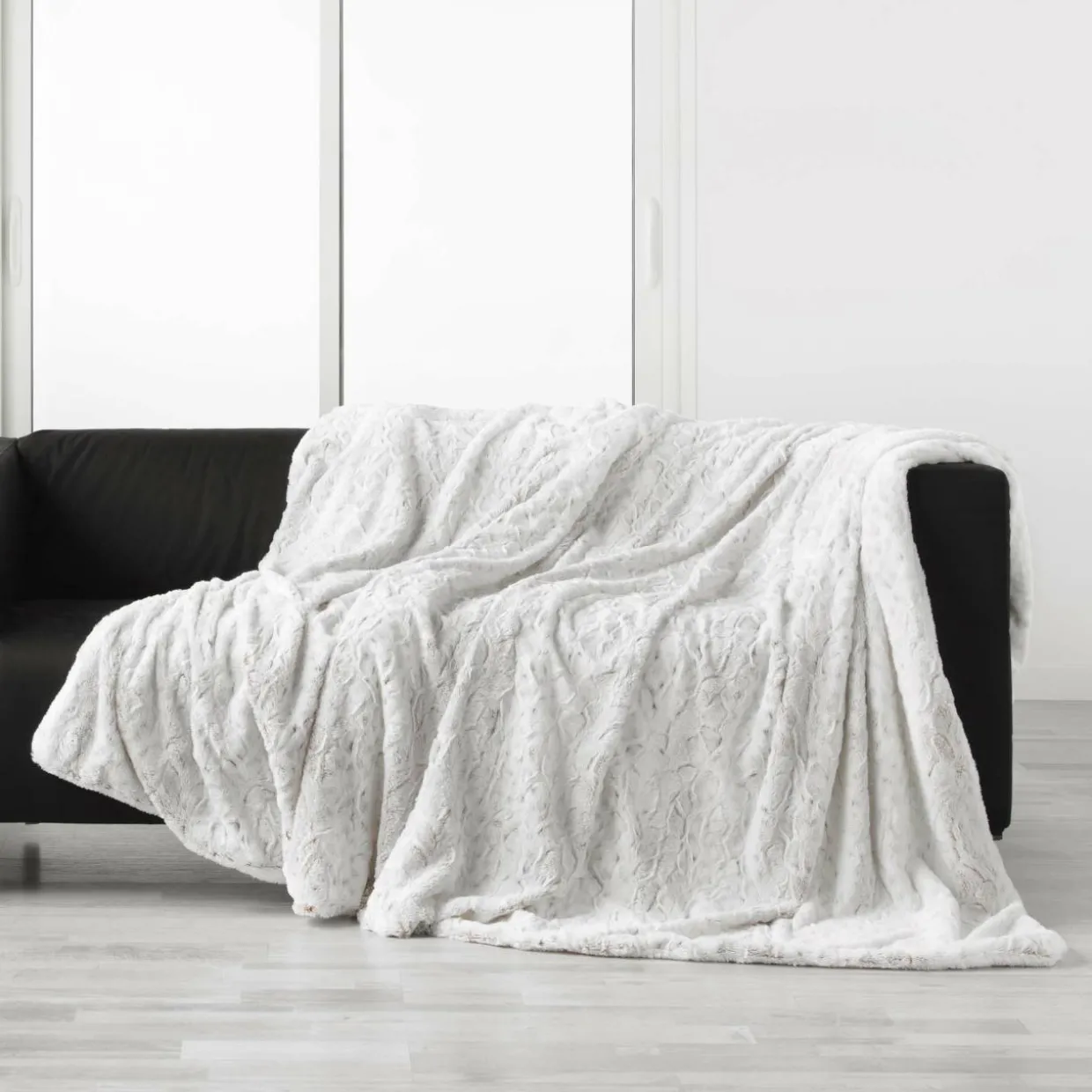 Matière : 100 % polyester, imitation fourrure au recto (220 gr/m²) et sherpa au verso (180 gr/m²).